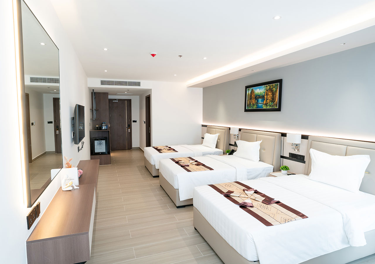 21 DELUXE TRIPLE ROOM Our 21 Deluxe triple Rooms are available as a Triple layout. Featuring a spacious ensuite bathroom with hot water shower, all our rooms are furnished to a very high standard. Settle down for a great night sleep on our new, very comfortable beds fitted with high quality cotton sheets and pillows.… Continue reading DELUXE TRIPLE ROOM